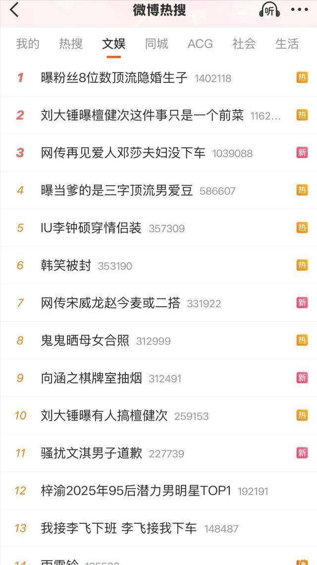 而每次网上爆料明星隐婚生子的时候,也会引发很高的热度。 就像这次一样,即使没有说名字,只是说“顶流隐婚生子”于是便长时间占据热搜第一的位置。 很多网友觉得能有这么大的热度,也是因为最近娱乐圈“男明星暴雷”的人太多。